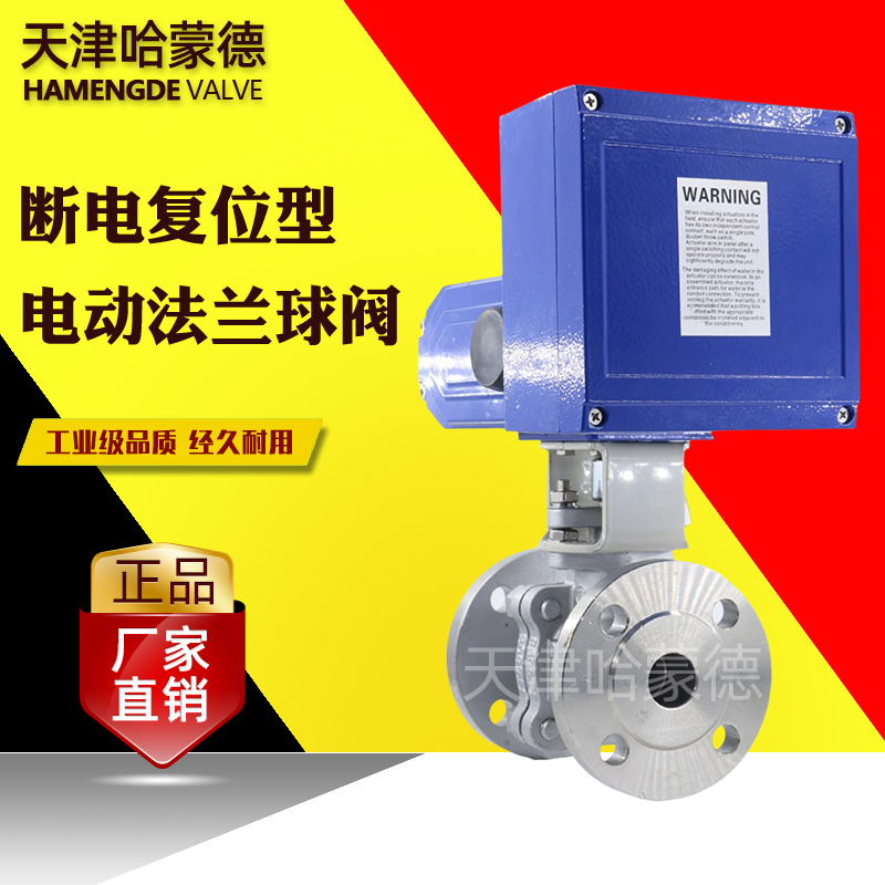 哈蒙德断电复位Q941F-16P常闭型铸钢304不锈钢电动法兰球阀220V