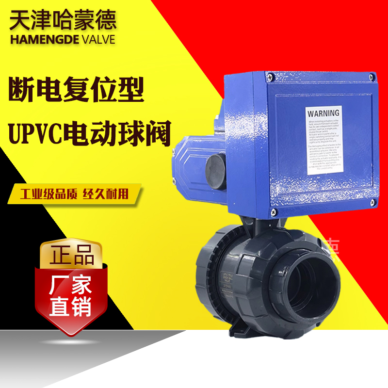 哈蒙德UQ921F-10S断电复位UPVC电动球阀常闭常开PVC塑料活接双由令开关阀门