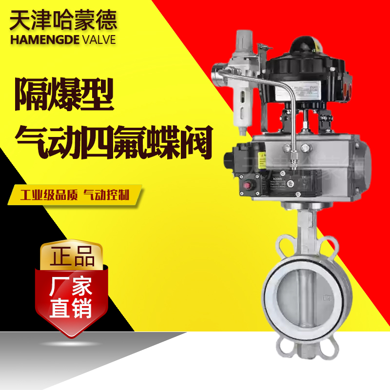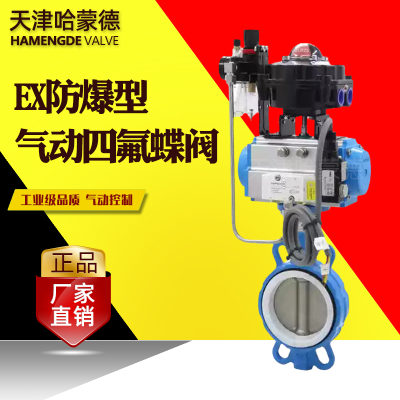 哈蒙德防爆型气动四氟蝶阀切断阀对夹式开关WD671F16Q耐酸碱腐蚀