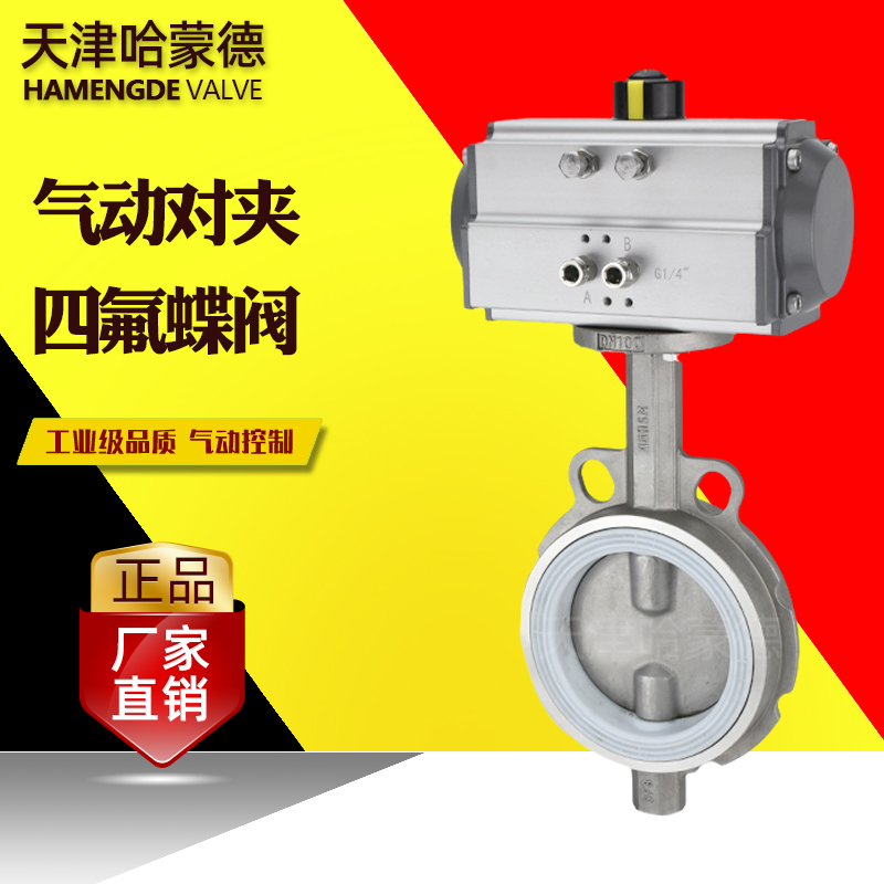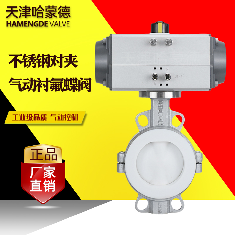 哈蒙德D671F4-16P气动不锈钢衬氟蝶阀304对夹衬里耐强酸强碱腐蚀切断阀氯气