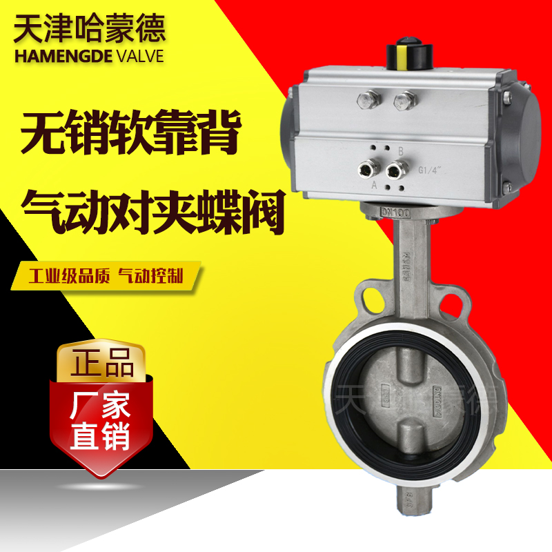 哈蒙德WD671X-16P气动对夹蝶阀不锈钢304无销软靠背双半轴水阀粉尘外加剂
