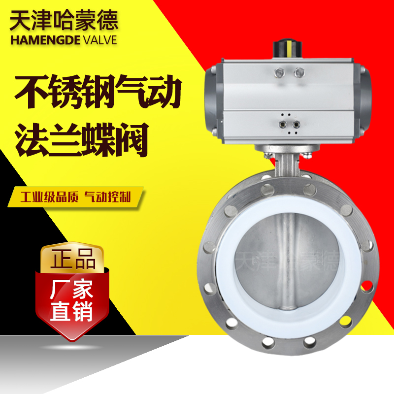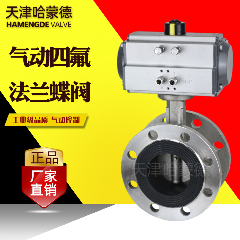 哈蒙德D641F-16P气动法兰四氟不锈钢蝶阀304防腐耐酸碱高温开关阀PTFE密封