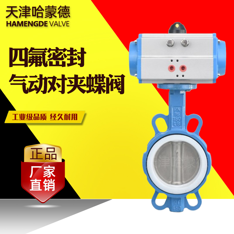 哈蒙德D671F-16Q气动蝶阀对夹式PTFE四氟密封高温耐酸碱耐腐蚀化工