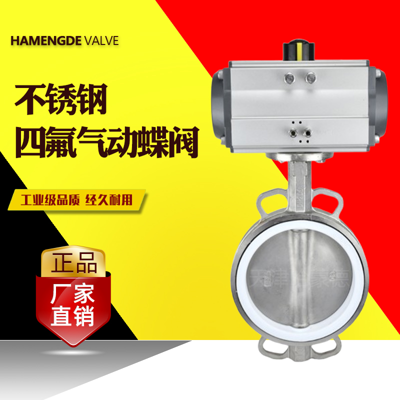 哈蒙德气动蝶阀四氟无销D67IF-16P304阀板阀体对夹式316不锈钢开关阀门防腐
