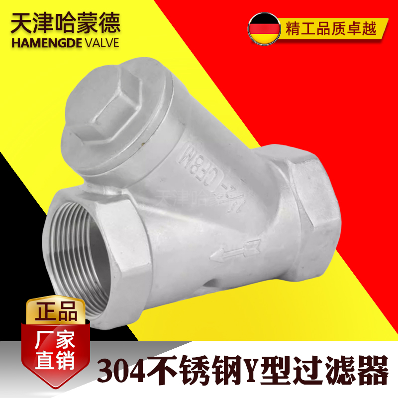 哈蒙德GL11W-16P 304不锈钢丝扣y型过滤器管道滤网内螺纹网阀门4/6分DN40 50