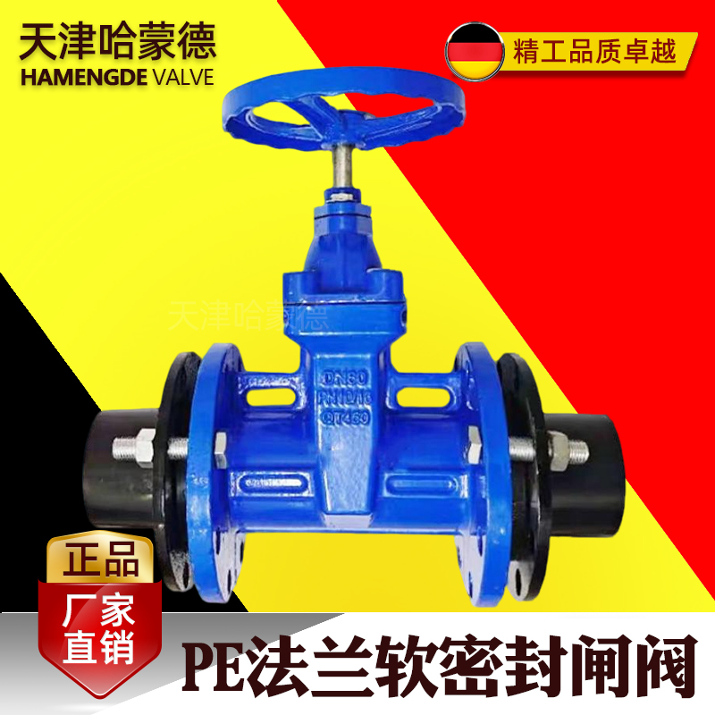 哈蒙德PE水管法兰闸阀铸铁软密封对接PE法兰灌溉自来水阀门开关