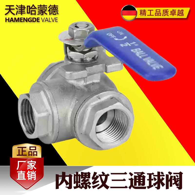 304不锈钢Q14/5F-16P三通球阀带开关丝扣L/T型一进二出内丝阀门开关6/4分1寸
