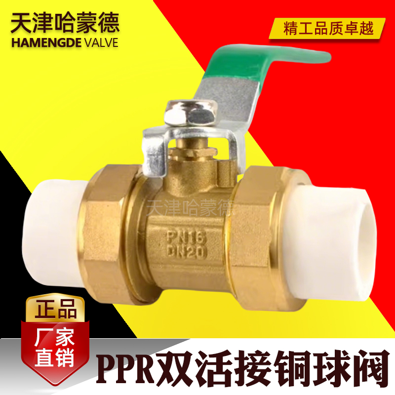 哈蒙德HMDPPRSHJTQF全铜PPR双头活接铜球阀热熔管阀门4分 6分1寸双活接球阀