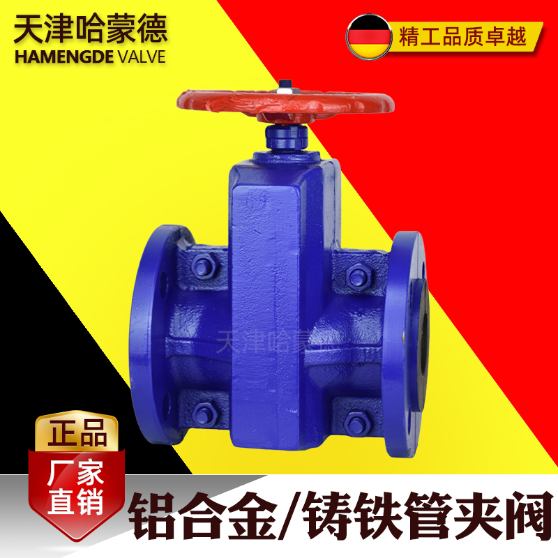 哈蒙德GJ41X10L铝合金/铸铁管夹阀胶管阀耐腐蚀排泥浆排矿渣粉尘