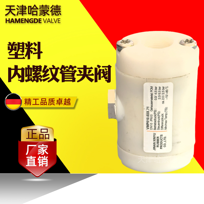 哈蒙德塑料内螺纹连接VMP气动夹管阀 不锈钢VMC气动管夹阀 挤压阀