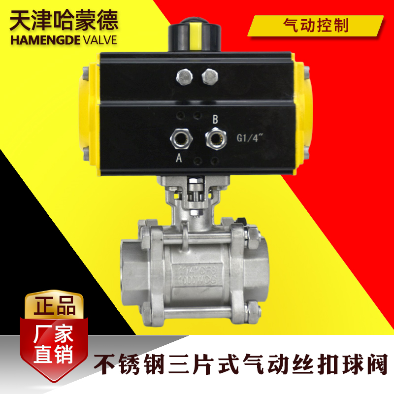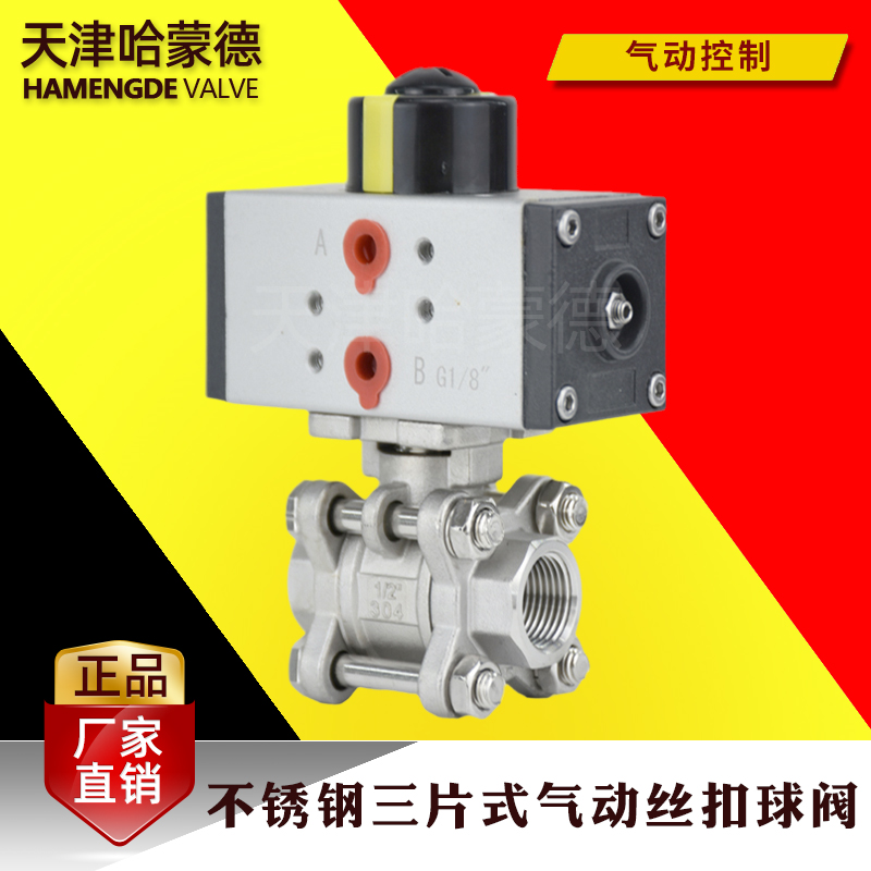 哈蒙德气动Q611F-16P304 316L不锈钢三片式丝口扣球阀DN15 20 25 32 40 50