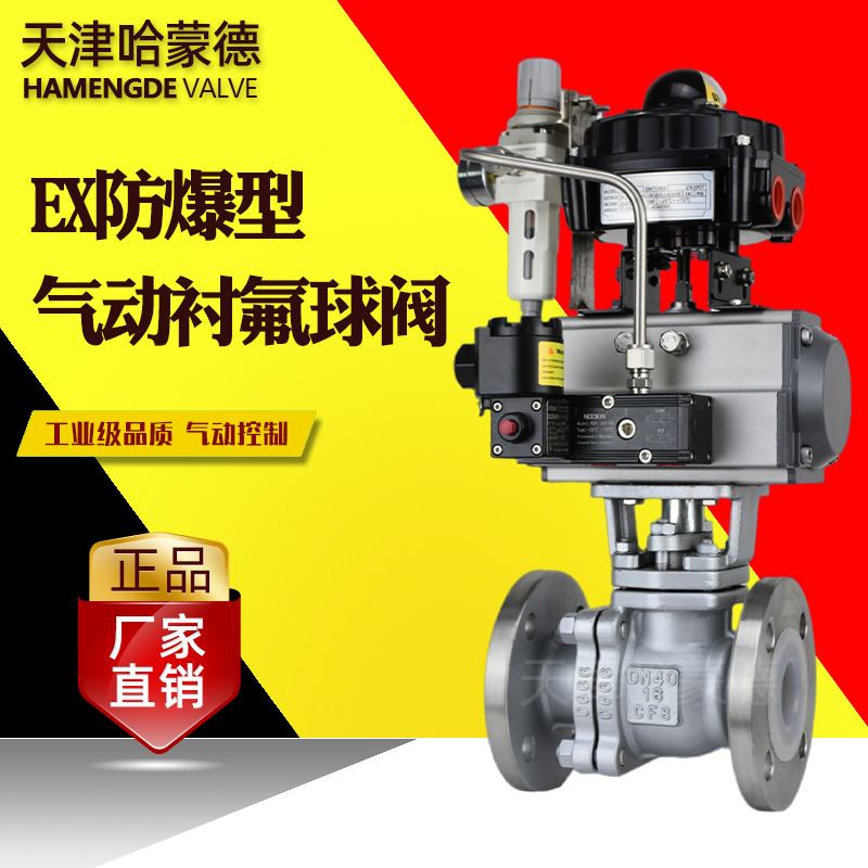 哈蒙德Q641F46-16P防爆气动不锈钢衬四氟球阀304/316化工衬氟开关O型切断阀