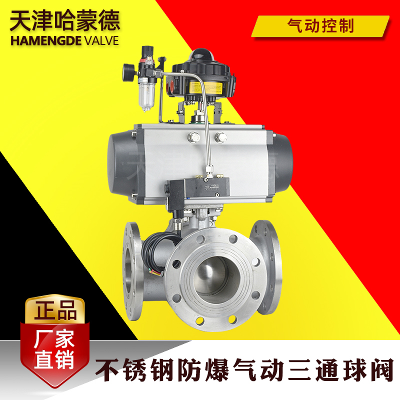 哈蒙德Q644/5F-16P 304 316防爆气动不锈钢三通法兰球阀L/T型转向换向阀转换阀