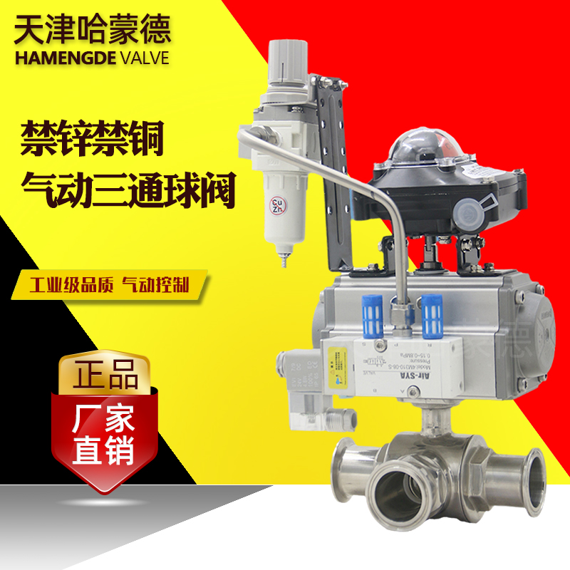 哈蒙德Q684/5F-16P气动三通球阀快装T型L不锈钢卫生级卡箍304卡盘快速切换316