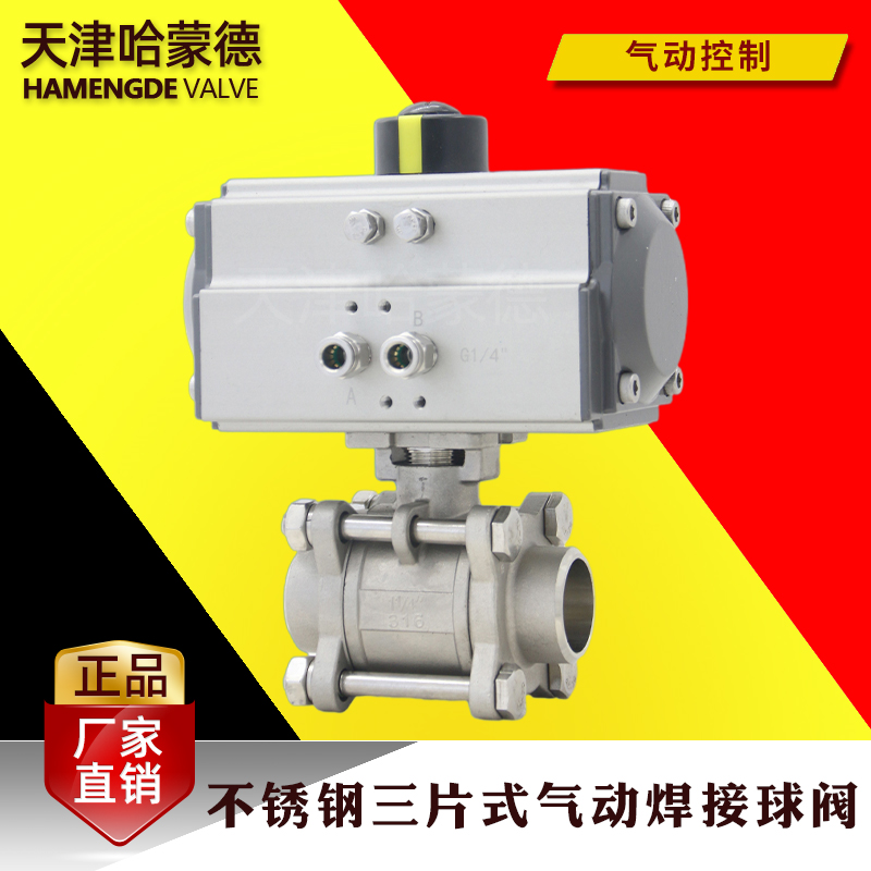 哈蒙德Q661F16P高温蒸汽304不锈钢三片式对焊式气动焊接球阀3PC