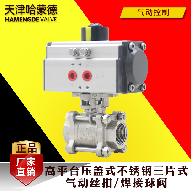 哈蒙德压盖式Q611F16P高温蒸汽304/316不锈钢三片式气动丝扣球阀