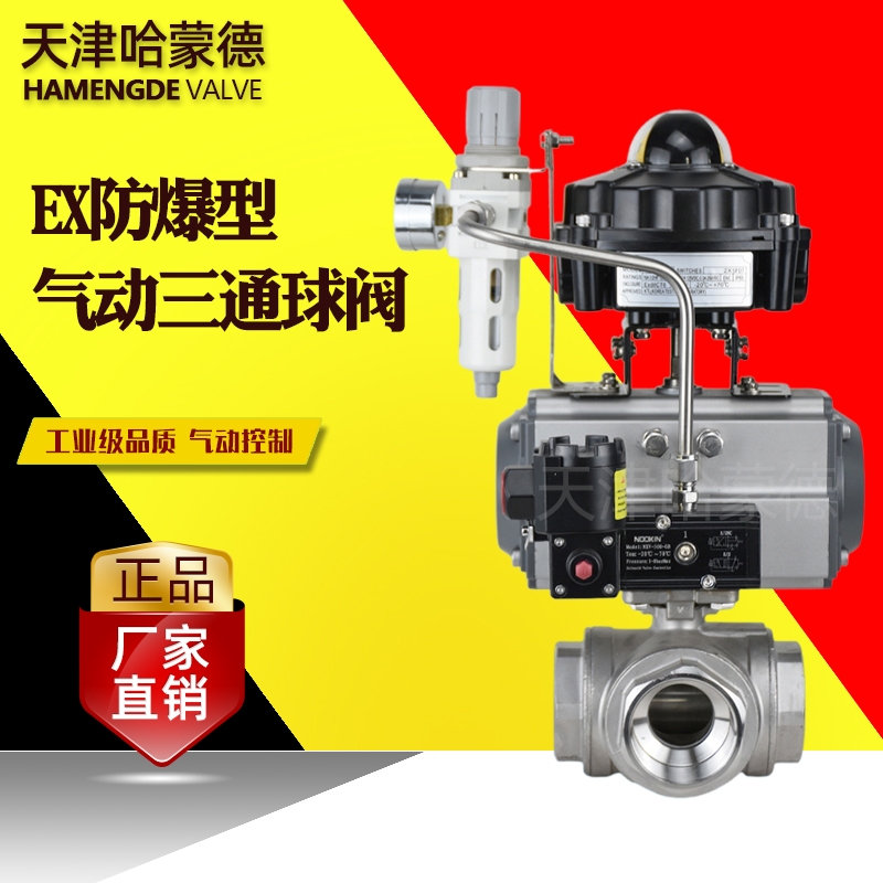 哈蒙德FB-Q615F-16P防爆气动三通球阀不锈钢304丝扣切换阀DN15 20 25 32 40 50