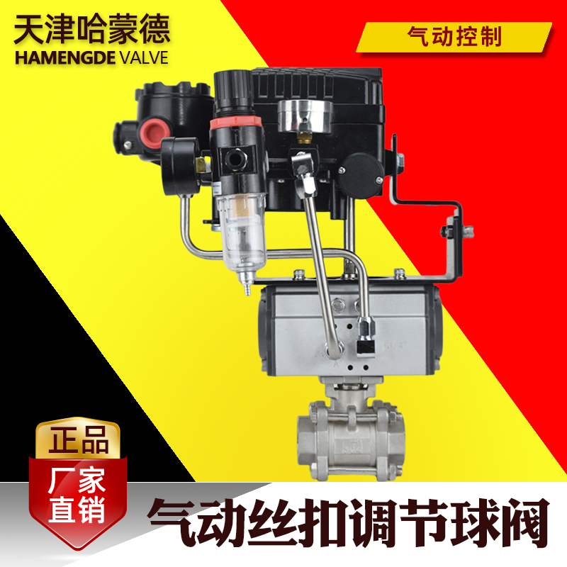哈蒙德Q611F-16P气动丝扣调节球阀内螺纹不锈钢调节阀模拟量420ma带定位器