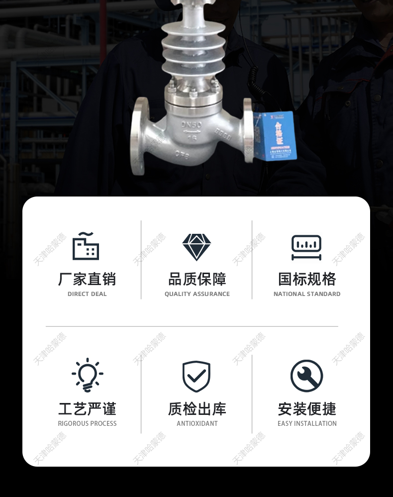 质量稳定:实行全过程质量监控,细致入微,全方位检测! 价格合理:高效内部成本控制,减少了开支,让利于客户! 交货快捷:先进生产流水线,充足的备货,缩短了交货期! 销售:022-85190966-1 传真:022-24919002 技术:022-85190966-5 产品介绍 服务承诺 订货流程 产品说明产品性能参数产品零部件材料产品外形及结构尺寸产品外形及结构尺寸示意图 声明:本文中所有文字、数据、图片均只适用于参考,哈蒙德ZDLP-16P带散热器高温蒸汽不锈钢法兰电动调节阀比例控制阀性能参数、结构尺寸参数、价格等详情,请联系我们,电话:022-85190966-1 。 气动隔膜阀 气动隔膜阀 直通隔膜阀 直流式隔膜阀 英标隔膜阀 三通隔膜阀 CPVC隔膜阀 UPVC隔膜阀 RPP隔膜阀 塑料隔膜阀 卫生级隔膜阀 电动隔膜阀 衬氟隔膜阀 真空隔膜阀 衬胶隔膜阀 U型隔膜阀 看了该产品的人还看了 哈蒙德ZJHP气动调节阀不 哈蒙德ZTRS不锈钢卫生级 哈蒙德ZJHP蒸汽压力温度 哈蒙德ZMBQ162T气动薄膜切 哈蒙德EG6B41J10铸铁法兰常 哈蒙德气动薄膜衬氟衬四 哈蒙德英标气动铸钢衬胶