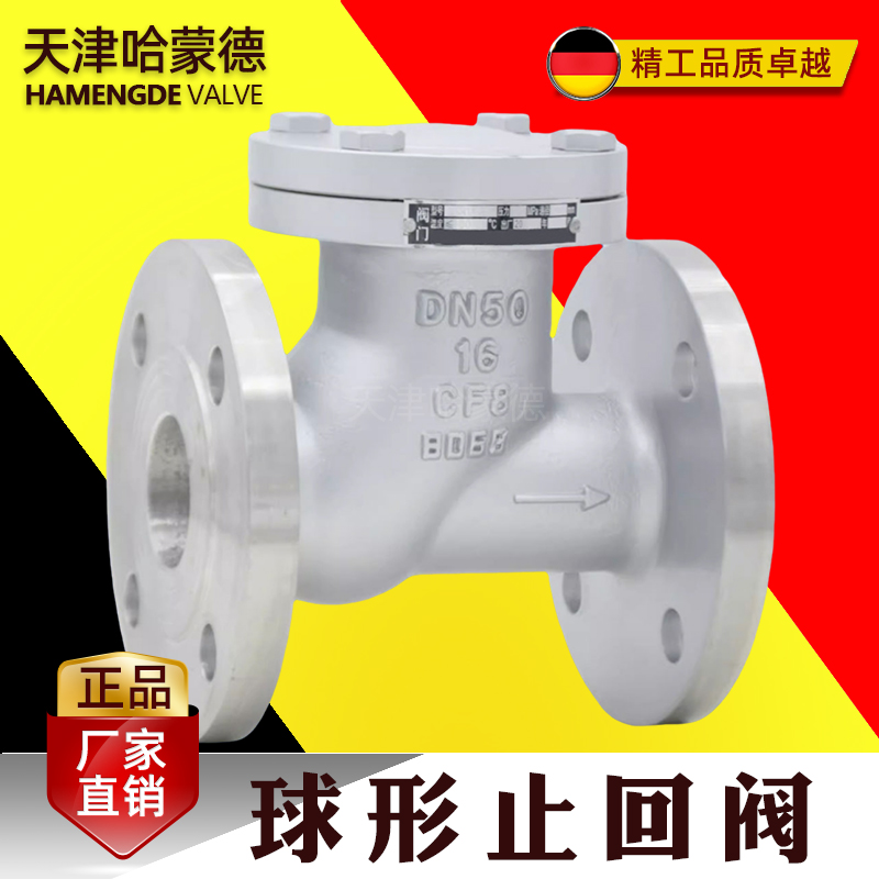 哈蒙德HQ41X-16Q球型止回阀法兰立式排污水滑道滚球式止逆单向阀